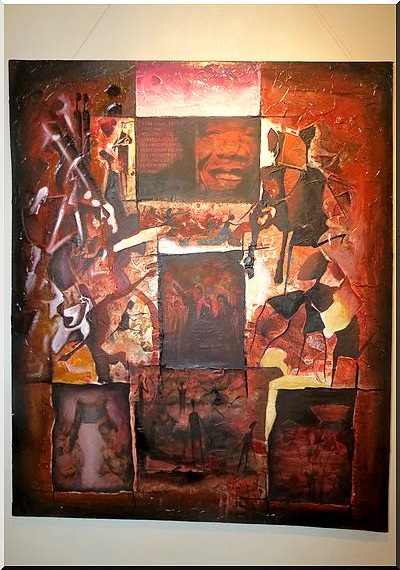 A travers 18 œuvres que l’on peut découvrir jusqu’au 18 février, l’artiste revisite les temps forts de la vie de Nelson Mandela comme son séjour carcéral à la prison de Pollsmor, à Robben Island, son accession à la présidence sud-africaine, le massacre de Sharpeville ou encore de celui de Marikana, sa libération…"Pour moi, Nelson Mandela est le père de la liberté en Afrique. Il a défendu l’égalité et la justice, réconcilié les Sud-Africains", souligne Mohamed Aly Bilal dit Daly.