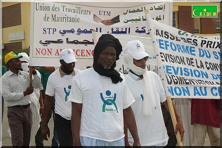 Les travailleurs affiliés à l’Union des Travailleurs de Mauritanie (UTM) ont défilé dimanche à Nouakchott.