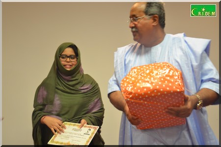 11 prix ont été distribués (5 pour le fondamental, 5 pour le secondaire et le prix de la ponctualité.) Après le mot de bienvenue de Hindou Mint Ainina, ex-ministre de la culture, un reportage du journaliste Ahmed El bou sur la dictée organisée le 08 mai 2016 a été projeté.