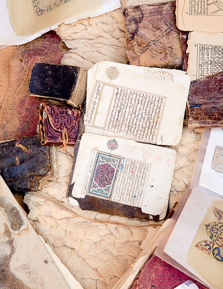 « Moins cher que gratuit », peut-on lire au-dessus d’une ancienne coopérative féminine de vêtements ! Le bibliothécaire, Ahmed Malmoud, nous raconte l’histoire de son pays et de sa ville, présentant des enluminures du XIIIe siècle et des ouvrages aux couvertures pailletées d’or. Il déclame des poésies arabes, insiste sur l’islam bienveillant pratiqué ici. « Avant, les Arabes étaient réveillés, ils se sont endormis, dit-il. Mes amis, nous avons tous le même dieu. Un dieu qui veut que la Terre s’épanouisse. Aujourd’hui, le monde est divisé en deux. Ceux qui veulent le célébrer. Et ceux qui veulent l’anéantir. »
