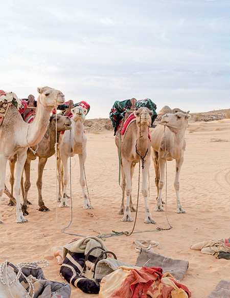 Kadi nous présente son équipe : trois chauffeurs, quatre cuisiniers, trois guides, six chameliers... et vingt chameaux blancs. Cette semaine, on va marcher six heures par jour pour traverser le désert de l’Adrar.