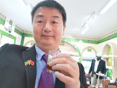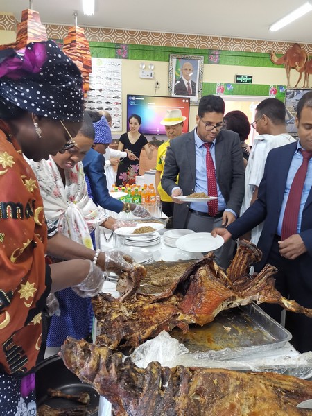 Après la découverte du contenu du pavillon, la délégation officielle comprenant plusieurs ambassadeurs de pays frères et amis, invités par leur collègue mauritanien, son excellence, monsieur Abdellahi Ould Villaly, ambassadeur de la Mauritanie auprès de la République Populaire de Chine, ainsi que plusieurs Commissaires généraux de pavillons des pays africains et arabes, frères et amis, conviés par leur collègue mauritanien, monsieur Oumar Ould Abidine Sidi, les hôtes de marque se rassemblèrent autour d'un méchoui à la mauritanienne, ce qui est en soi un exploit dans ses terres lointaines des nôtres.