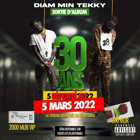 La sortie officielle de l’album « 30 ans » du groupe mythique Diam min Tekky alias les soldats sans salaire est prévue le 05 mars 2022 à partir de 18 heures au terrain terrain ARENA de Sebkha (Nouakchott)