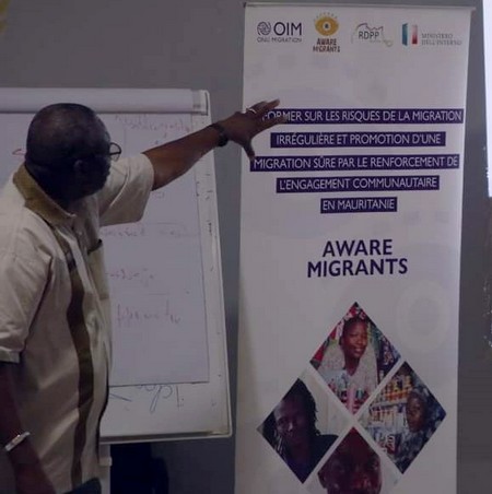 Il faut noter que cette « formation » entre dans le cadre du projet « Aware Migrants » financé par le Ministère italien de l’Intérieur et mis en œuvre par l’OIM. La campagne vise à sensibiliser les migrants potentiels sur les dangereux périples à travers le désert et la Méditerranée. Ici, l’Organisation internationale de la migration, a été à la source : l’école. Car c’est là, entre autres, une cible à toucher à très tôt sur un sujet aussi important que la question migratoire.