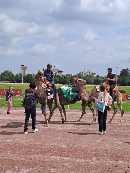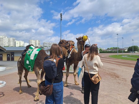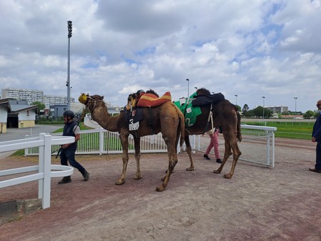 Deux duels de dromadaires se tiendront sur la piste de l'hippodrome de Reims en fin de journée le samedi 15 juin 2024. Deux duels de dromadaires se tiendront sur la piste de l'hippodrome de Reims en fin de journée le samedi 15 juin 2024.