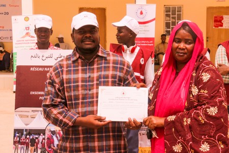 Cinq (5) acteurs de la transfusion sanguine parmi ces fidèles donneurs de sang ont été décorés par des attestations de reconnaissance et la remise de cadeaux.