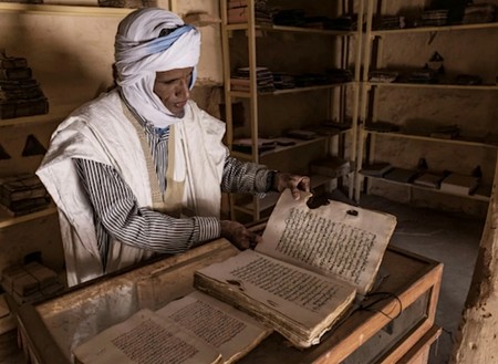 Mais Chinguetti, c’est d’abord une mémoire. Une mémoire enfouie dans des manuscrits anciens, conservés dans une dizaine de bibliothèques familiales que le vent du désert menace d’engloutir. Ces textes, rédigés en arabe, évoquent la théologie, l’astronomie, la médecine. “Ses murs en terre sont depuis des siècles les gardiens de manuscrits, legs de générations d’étudiants et de pèlerins : traités de mathématiques, poèmes, écrits coraniques ou documents juridiques, rédigés sur du papier de Chine ou de la peau de gazelle.