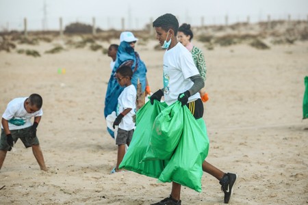 À Nouadhibou, une action parallèle de nettoyage et de sensibilisation a été organisée en partenariat avec l’association #AAEM, mobilisant également des écoliers autour des enjeux de la pollution marine.