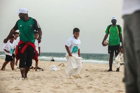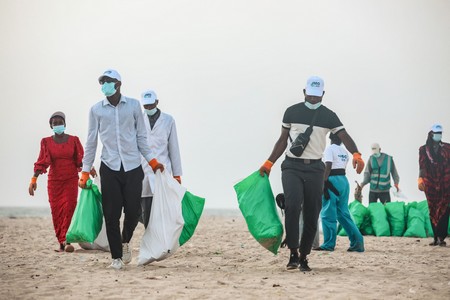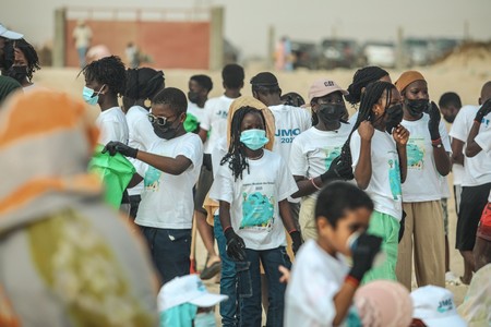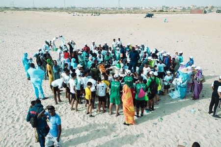 Des élèves de l’école Les Flamboyants, accompagnés de leur directrice Mme Tandia, les jeunes de l’Académie de foot junior et leur coach Bessam Bessam Khalil Khalil, les étudiants de l’université Al Asriya, les membres des Association JEMP et Éco-Développement, ainsi que de nombreuses familles, partenaires et agents du ministère de l’Environnement et du Développement Durable وزارة البيئة و التنمية المستدامة, tous mobilisés pour cette cause commune, Un océan, une responsabilité partagée.