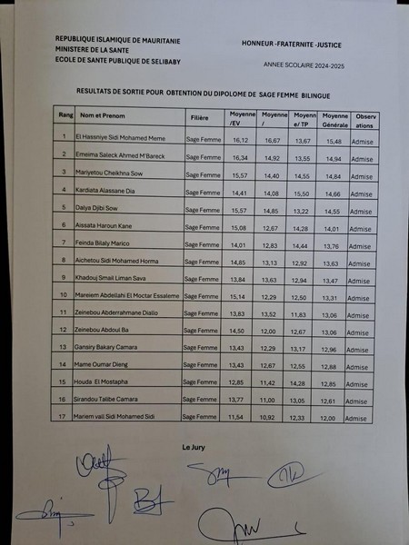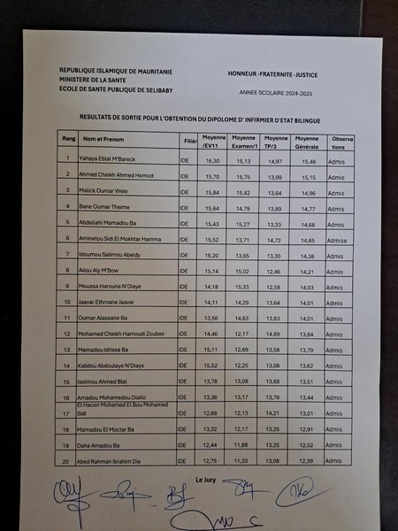 Les listes officielles affichées à l’école de santé publique de Sélibaby confirment ces chiffres :