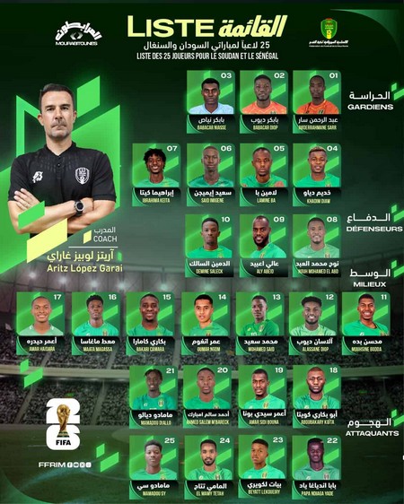 Wiwsport -- La Mauritanie a publié sa liste de joueurs pour les deux derniers matchs des éliminatoires de la Coupe du Monde 2026, notamment contre le Sénégal à Diamniadio.